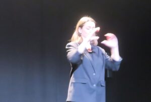 Je me déplace pour de la liaison, des conférences, de la formation, des réunions, et notamment pour l’accessibilité de pièces de théâtre. Je suis également comédienne professionnelle.